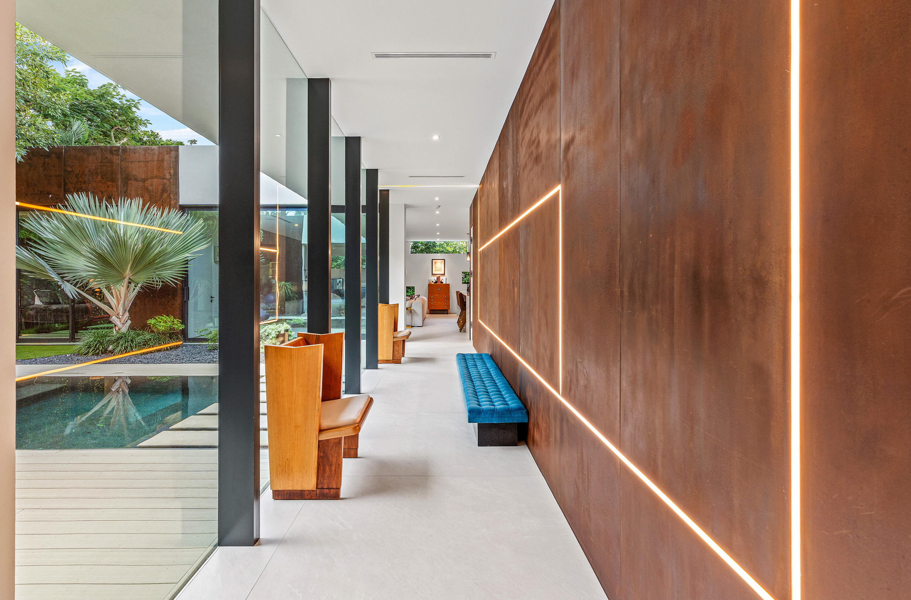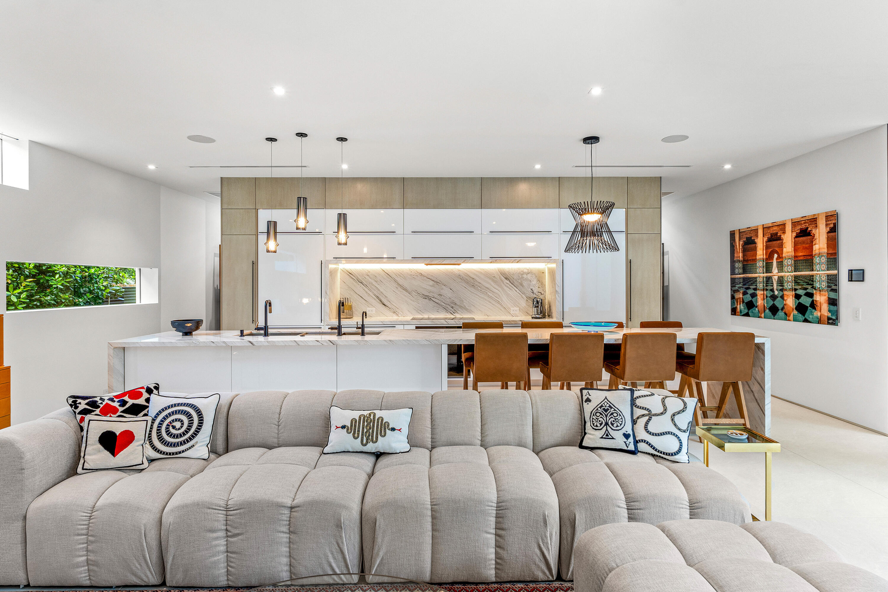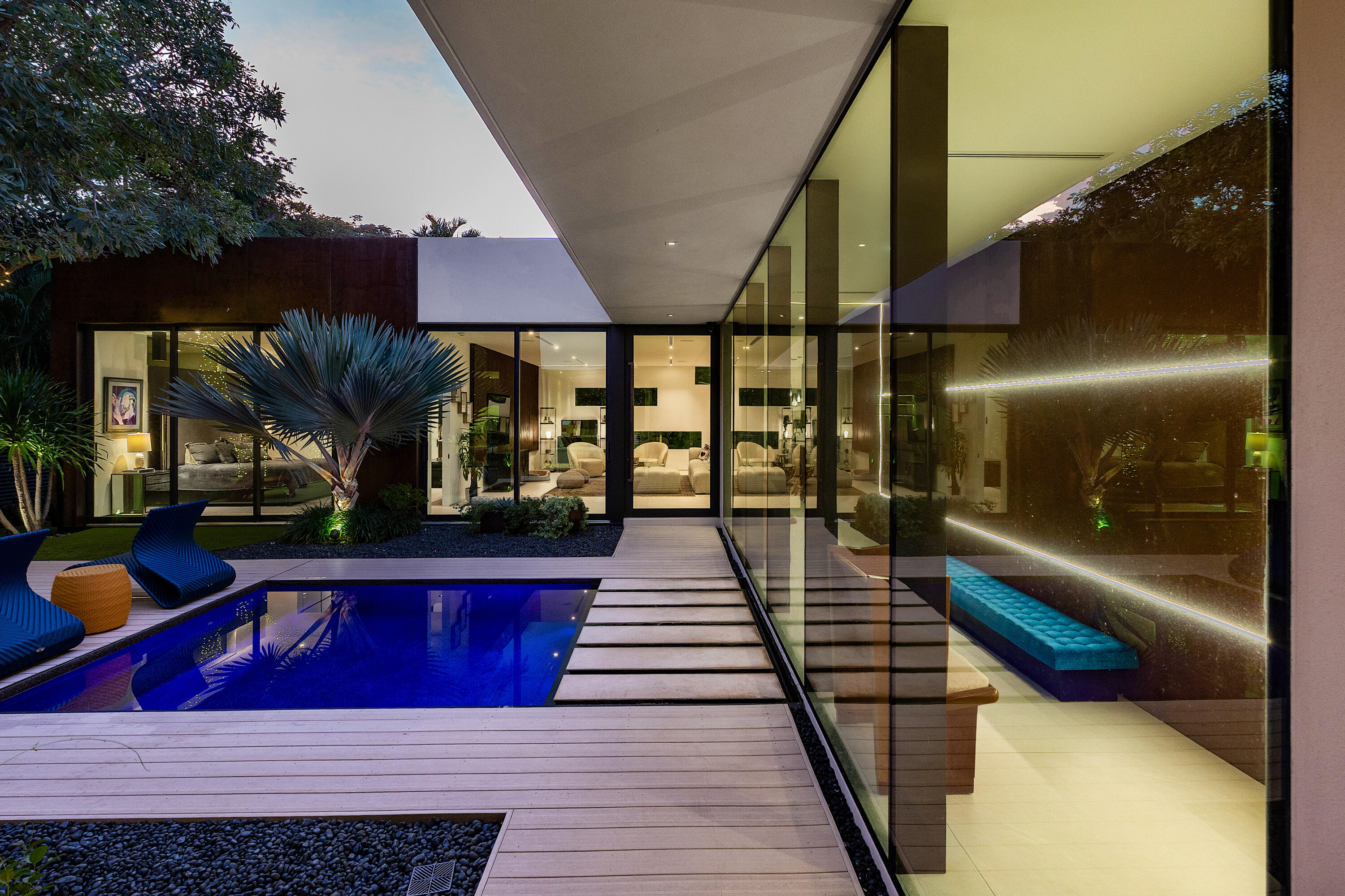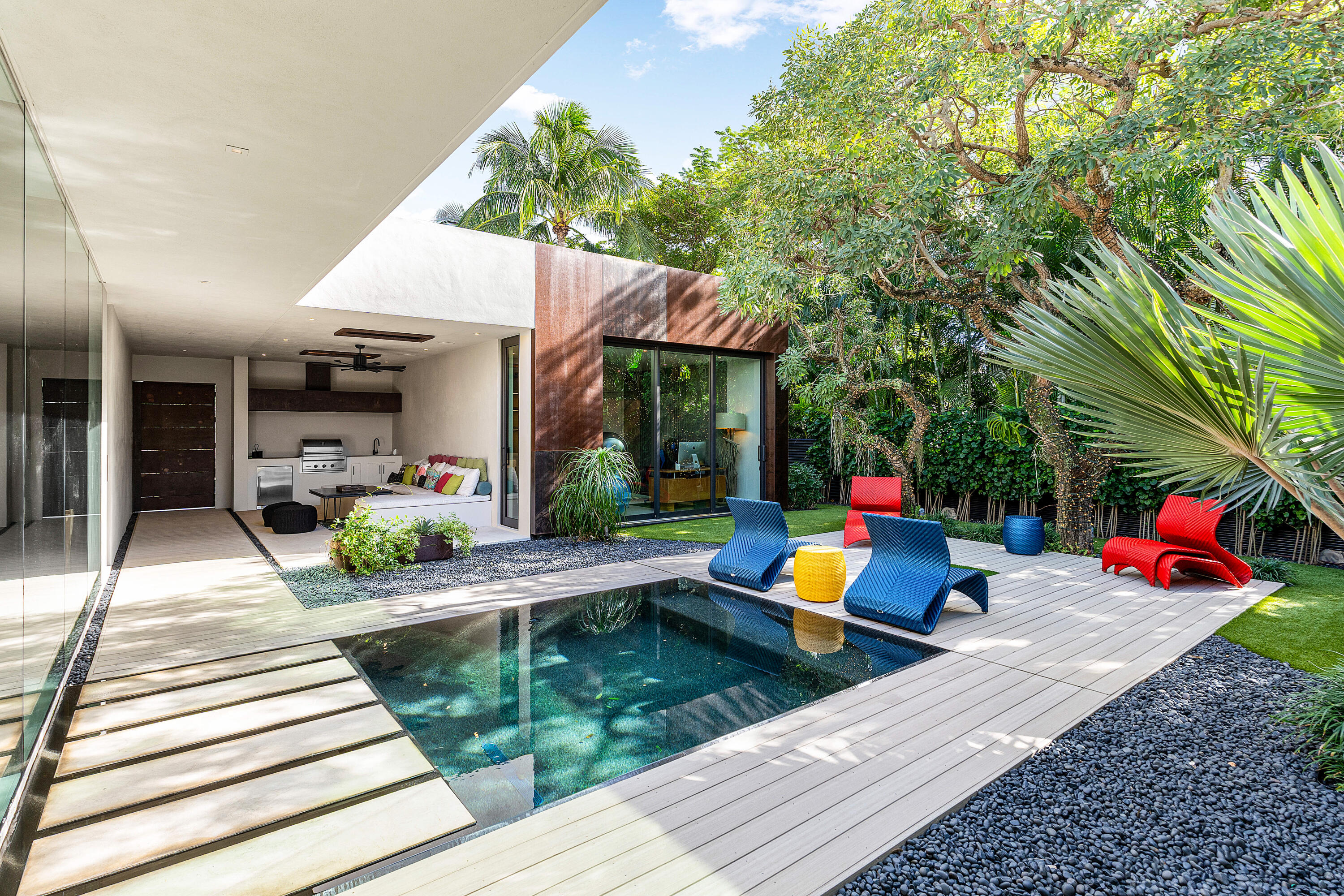 An Architectural marvel, designed by Richard Jones, custom blt in 2020. Experience contemporary elegance in a distinctly tailored setting. This residence seamlessly integrates modern design with opulent comforts, situated in the heart of Delray Beach, adjacent to Pineapple Grove. Featuring 4 BR 4.5 BA, this unique property goes beyond mere aesthetics; the attention to detail & high quality craftmanship is unequaled. Control4 Technology, floating drywall & trim less interior doors, Wolf & Sub Zero appliances, floor to ceiling glass & porcelain flooring throughout are just a few of the highlights in this thoughtful contemporary courtyard residence. A serene-zen inspired pool sanctuary is in view from all corners, including the private casita suite & the lounge loggia space. Super special!