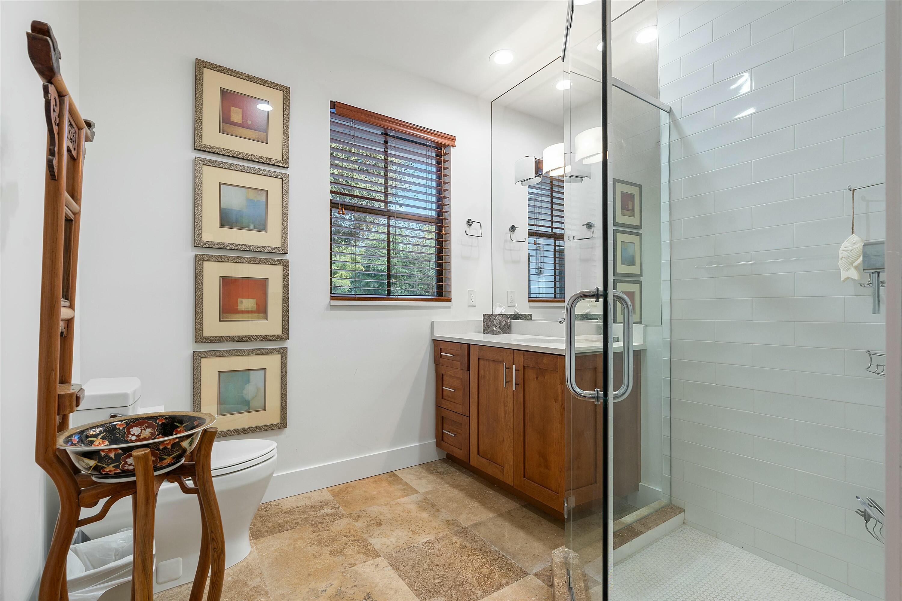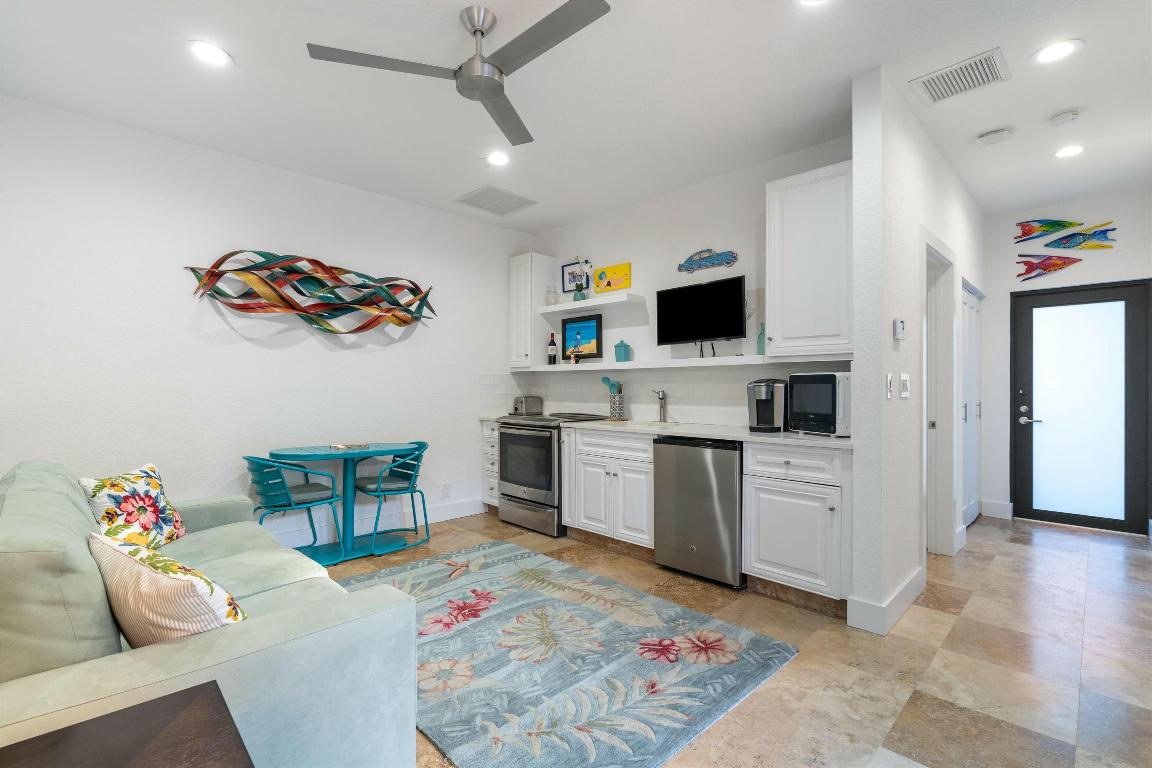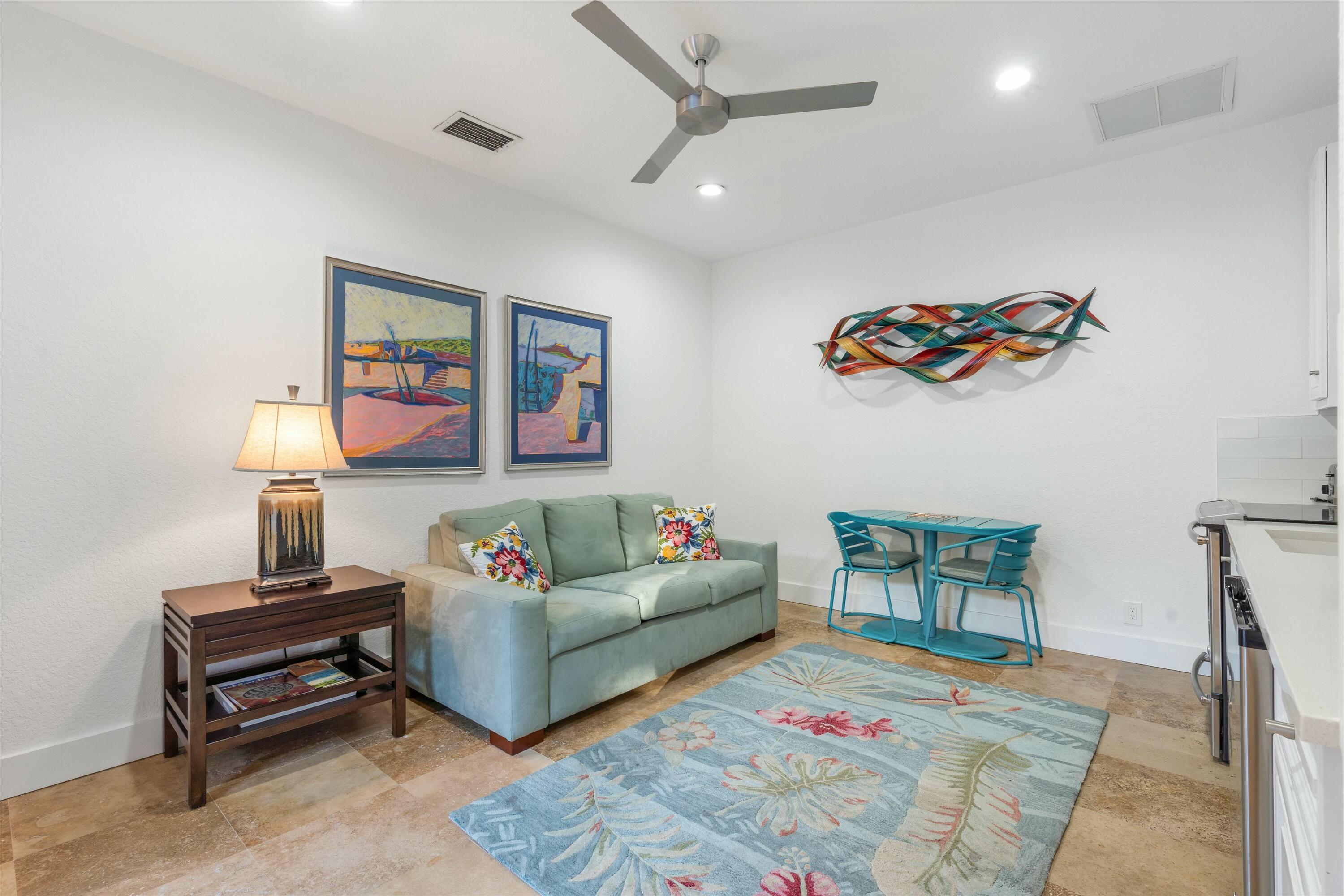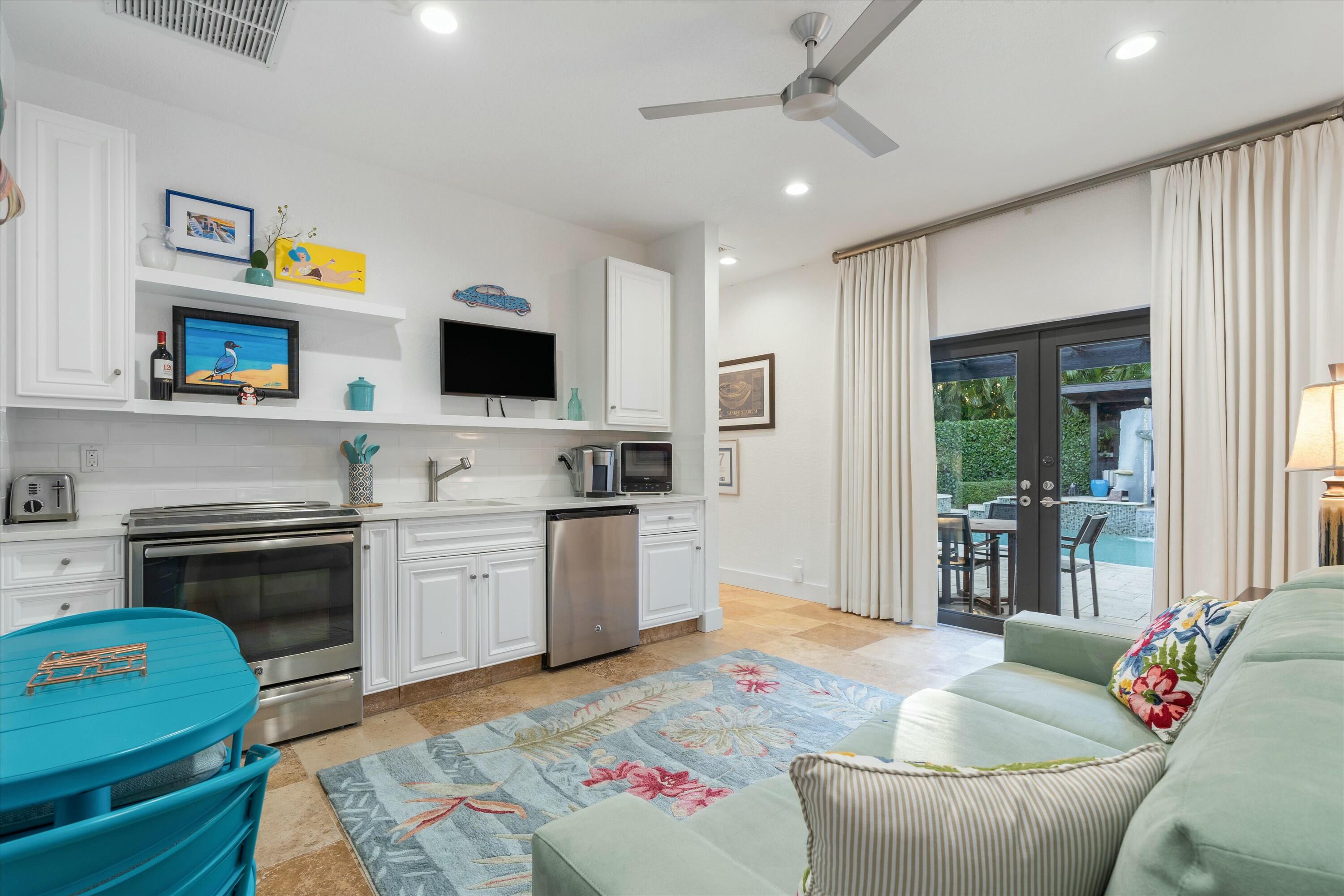 A private one-bedroom, one-bathroom guest house adds versatile living options. With its own kitchen, laundry, separate entrance, and a full living area, it offers flexibility to function as an independent residence or integrate seamlessly with the main house for additional space.
