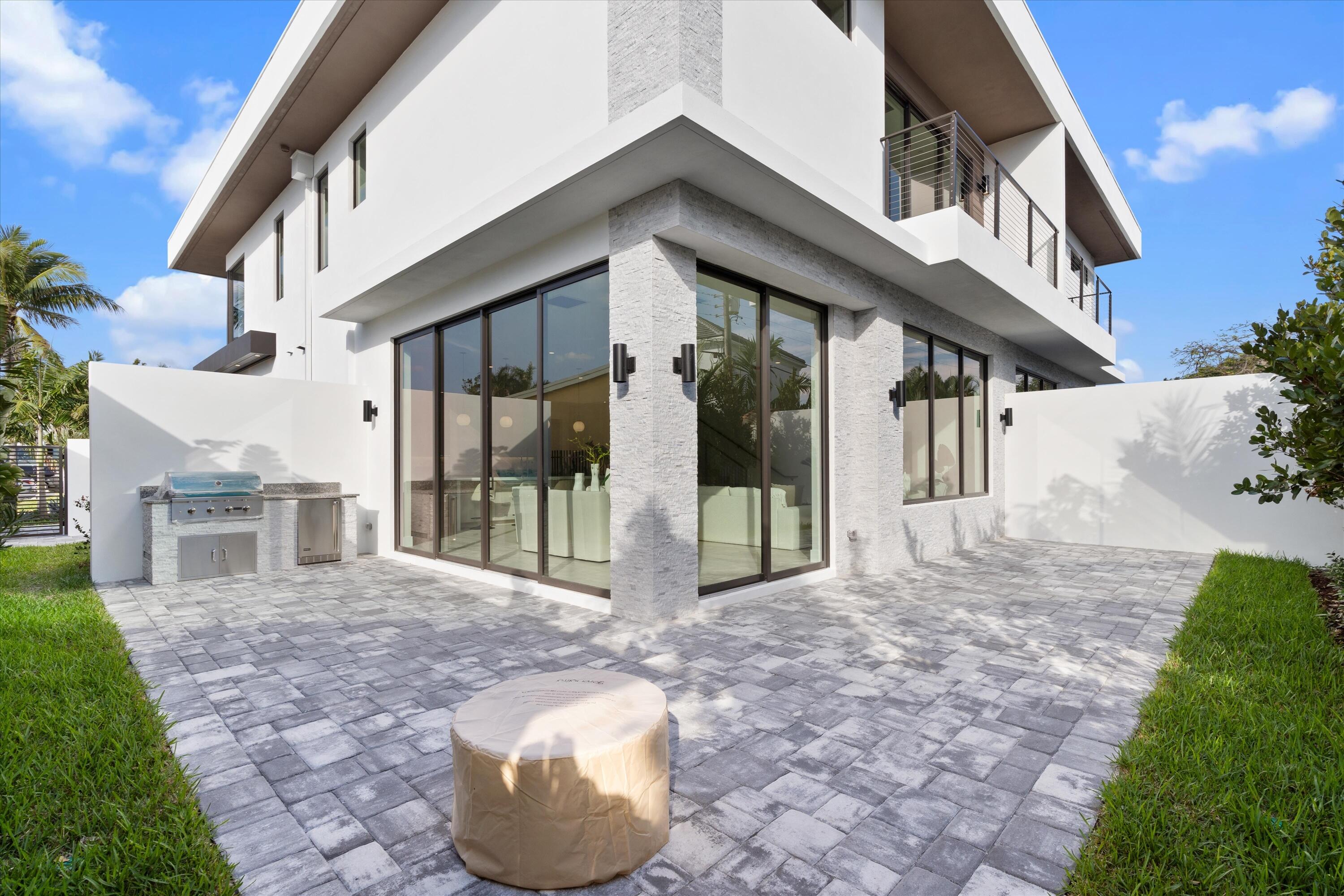 Newly constructed, this townhome offers an ideal blend of coastal modern luxury. Throughout the first floor wood flooring brings warmth, expansive windows allow the outside in, the gourmet kitchen is the heart of the open living space equipped with Thermador appliances, gas cooktop & a large island for entertaining. All bedrooms have ensuite bathrooms providing privacy & convenience. The primary bath is a spa-like ''wet room'' & features a rain shower, free standing soaking tub, dual sinks & water closet. The outdoor patio is perfect for entertaining with a summer kitchen & a cozy gas firepit. Located in East Delray steps from Captain Clays seafood & pop stroke mini golf. Walk, bike or golf cart to the beach or Pineapple Grove. Live the vibrant East Downtown Delray life here!